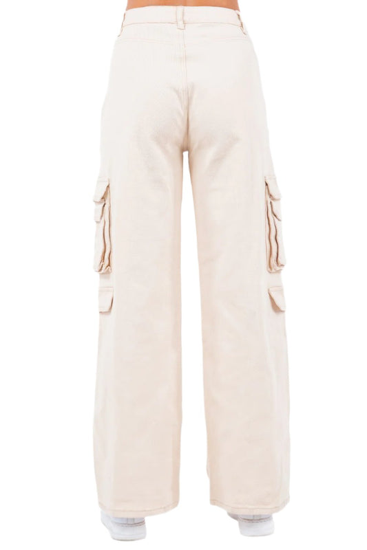 Women's High Waist Straight Cargo Pants - Ivory